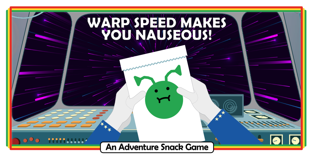 You lean forward in your captain’s chair and take a deep breath. Hopefully, warp speed won’t make you full-on sick, just a little sweaty. And sweats can be blamed on the giant stowaway insectoid who lives in the temperature control room. He likes it toasty and he can’t be stopped. “Navigator, utilize warp speed,” you […]